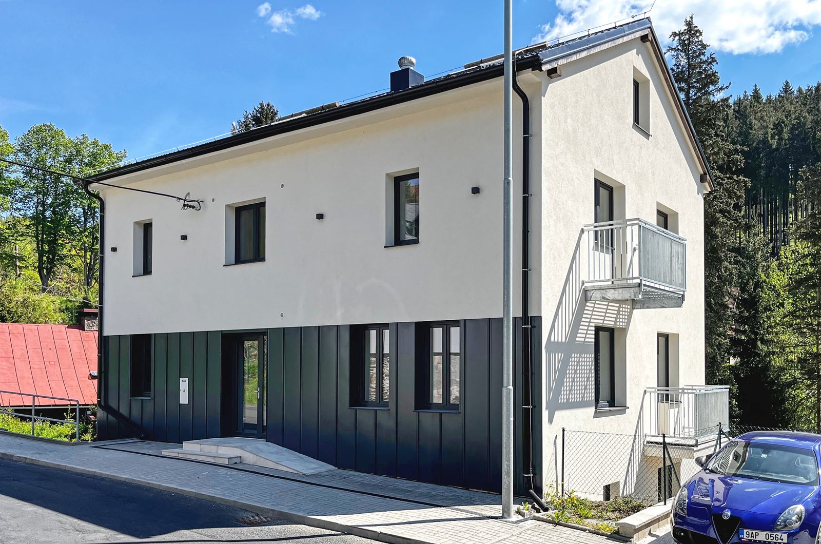 Projekt vznikl kompletní rekonstrukcí a adaptací stávajícího objektu na bytové jednotky s vysokým standardem provedení.